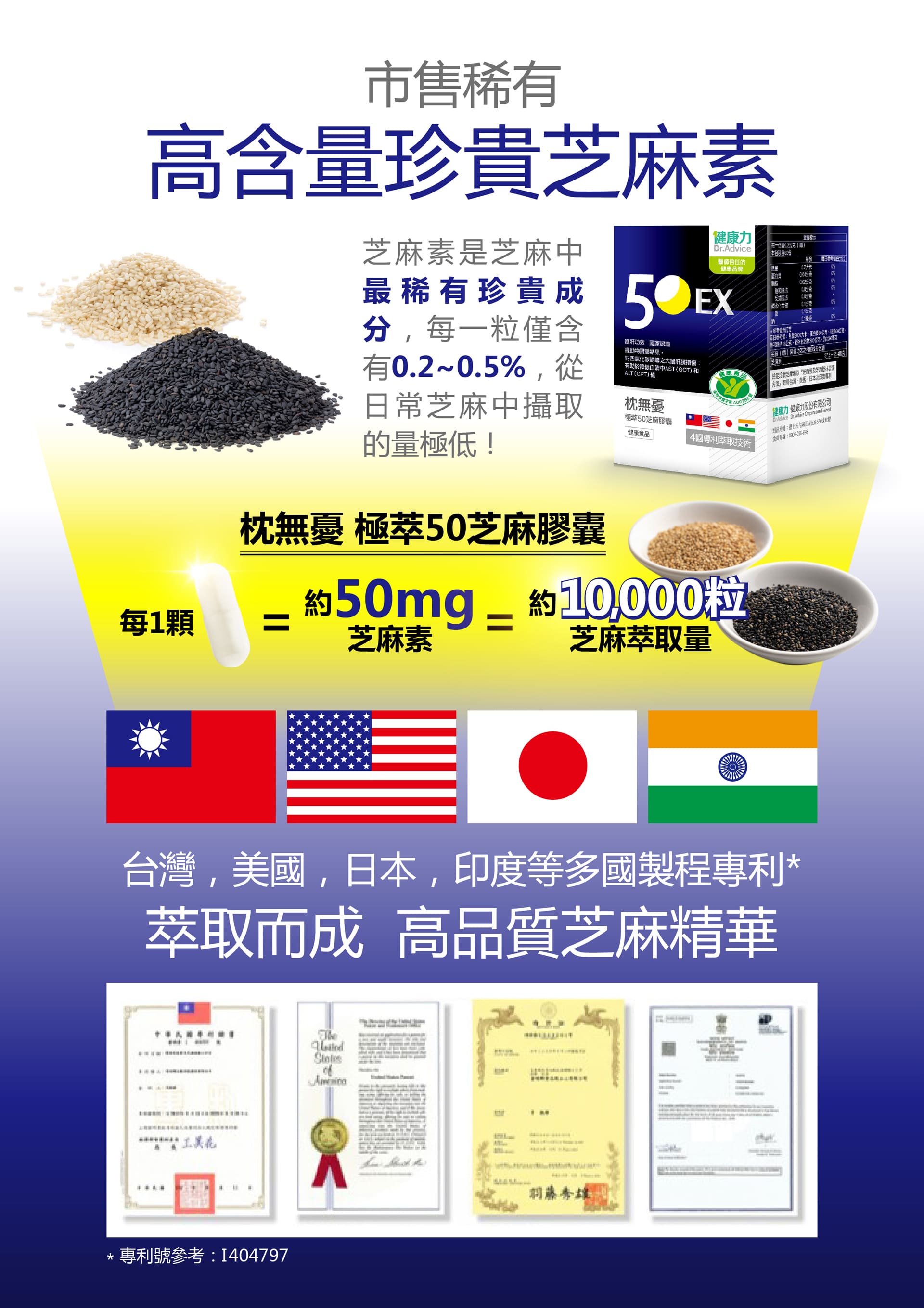 護肝功效(健康食品認證),幫助入睡,保持好氣色好心情。每1顆含芝麻素37.6~56.4毫克,為市售稀有高含量產品。產品容量