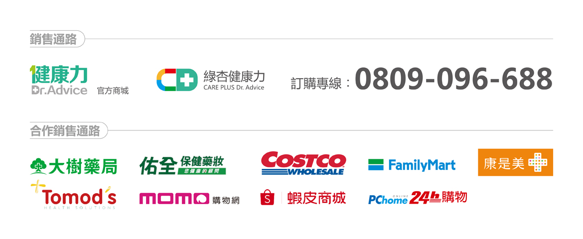 健康力銷售通路多元,涵蓋電話客服、健康力商城、momo購物網、PChome購物、蝦皮商城、實體通路Costco、大樹藥局、康是美、全家便利商店、佑全保健藥妝店、綠杏健康力藥局、Tomod's等。 註:各通路銷售商品有所不同,建議購買前先確認。